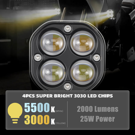 【Super Bright Beam】3030 LED chips provide 25w, 2000lm and 5500k white light and 3000K yellow light.