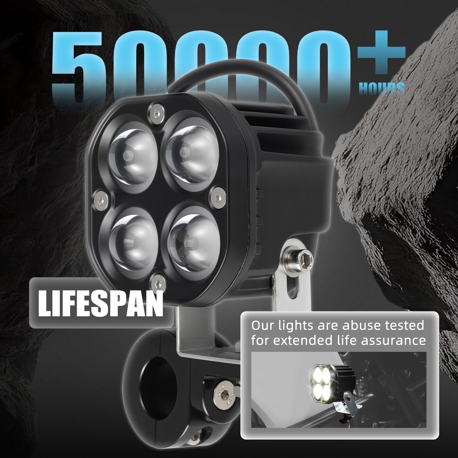 【Wide Field of View】The flood beam distance and wide irradiation area allow you to see farther and have a wider field of view.