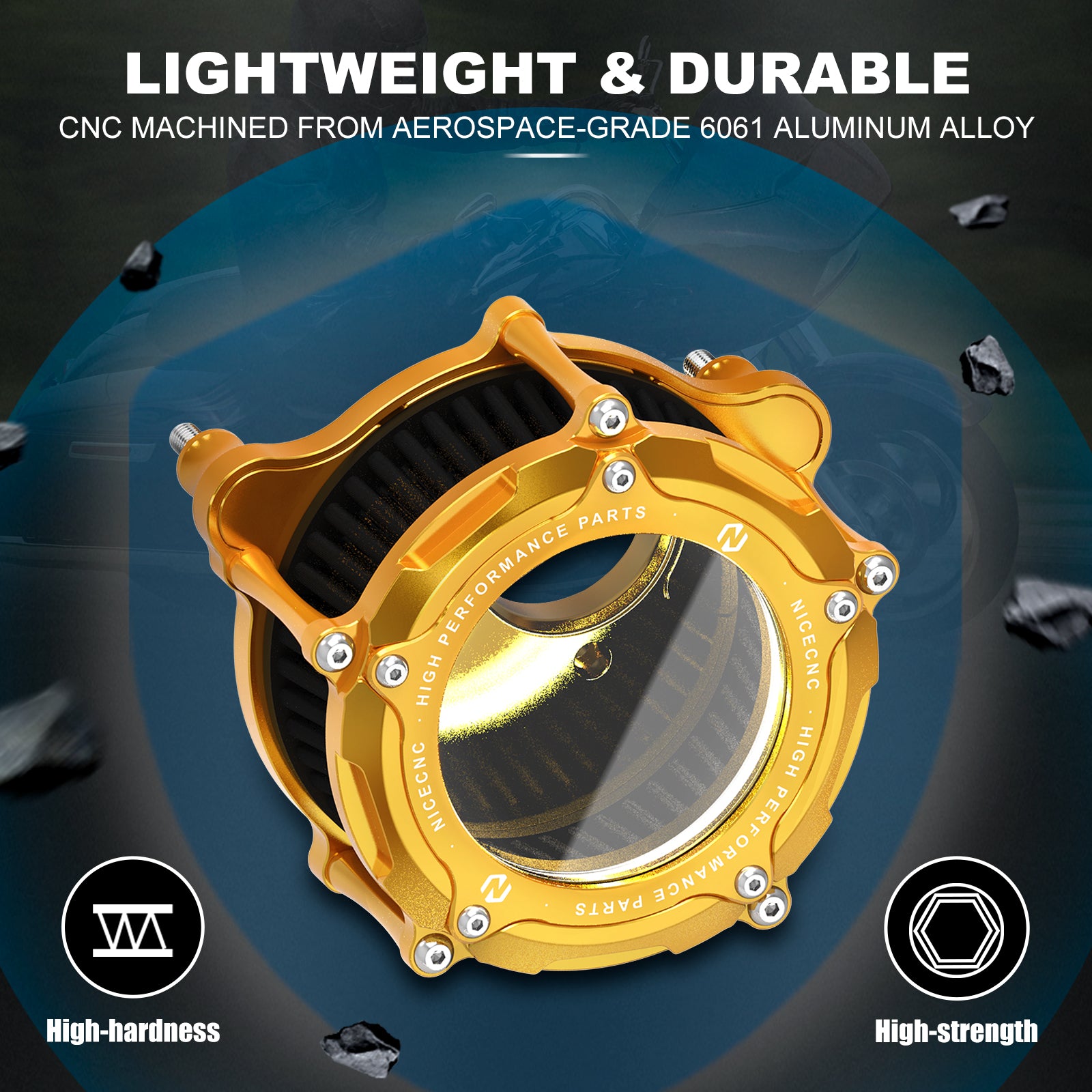 This air cleaner kit comes up with high-quality strip lights that mark a great vibe for nighttime cruising and add a touch of style to your Harley-Davidson. You can ride in the rain with peace of mind since it uses the latest-generation waterproof sealing technology.