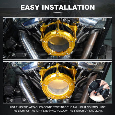 【Easy installation】The CNC precision cutting ensures a perfect fit. Just plug the attached connector into the Tail Light Control line. The light of the air filter will follow the switch of tail light.