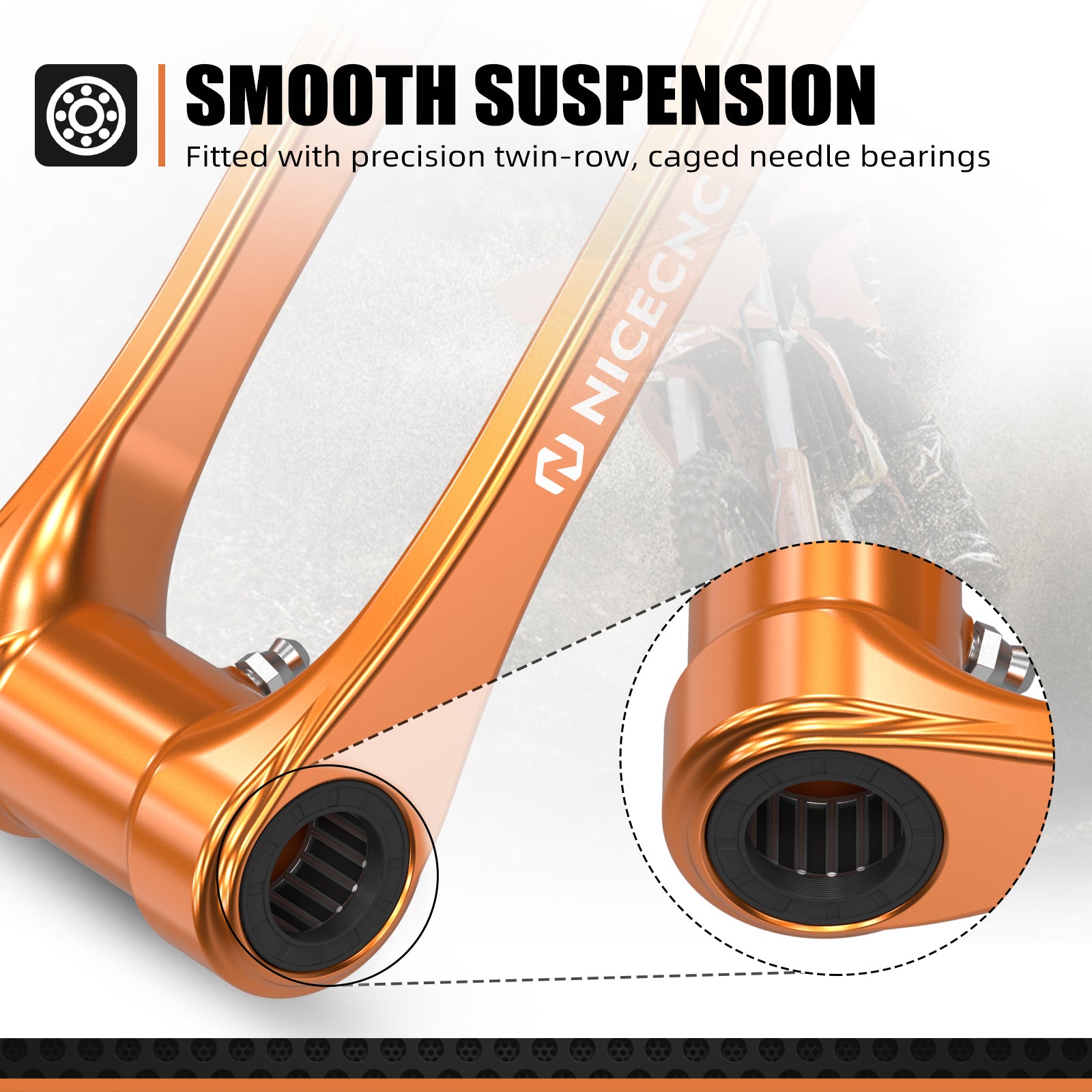 【Smooth Suspension】Equipped with precision double-row cage needle bearings to ensure smooth suspension articulation.