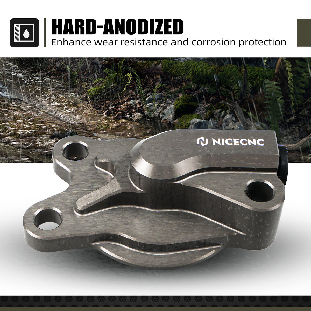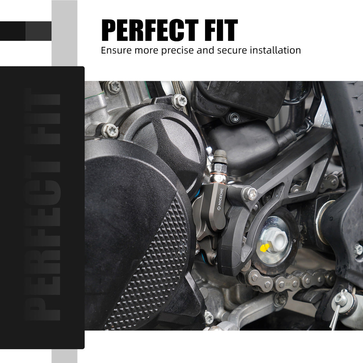 Install the NICECNC slave cylinder, ensuring all original components are reinstalled. Note that the master cylinder capacity for Husaberg/Husqvarna/KTM/GasGas models is very small, so oil levels must be carefully monitored. Some models require a small chain guard to be installed before the hydraulic hose for proper assembly. Bleed the system through the original bleed valve at the top of the slave cylinder, ensuring a pipe is connected to a collection container. Pull the clutch lever approximately six times (holding the lever during the final stroke). Release the valve to relieve fluid pressure, then re-tighten and release the lever. Repeat this step until the clutch no longer feels “spongy.” Ensure the clutch master reservoir fluid level does not drop too low to prevent air ingestion.