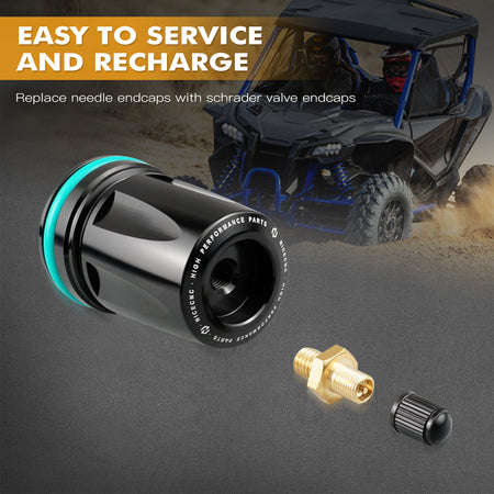Replace the stock needle-style fill end caps for FOX shocks on UTV and ATV such as Polaris, Honda,Yamaha,Can AM, Kawasaki, Arctic Cat, Etc.