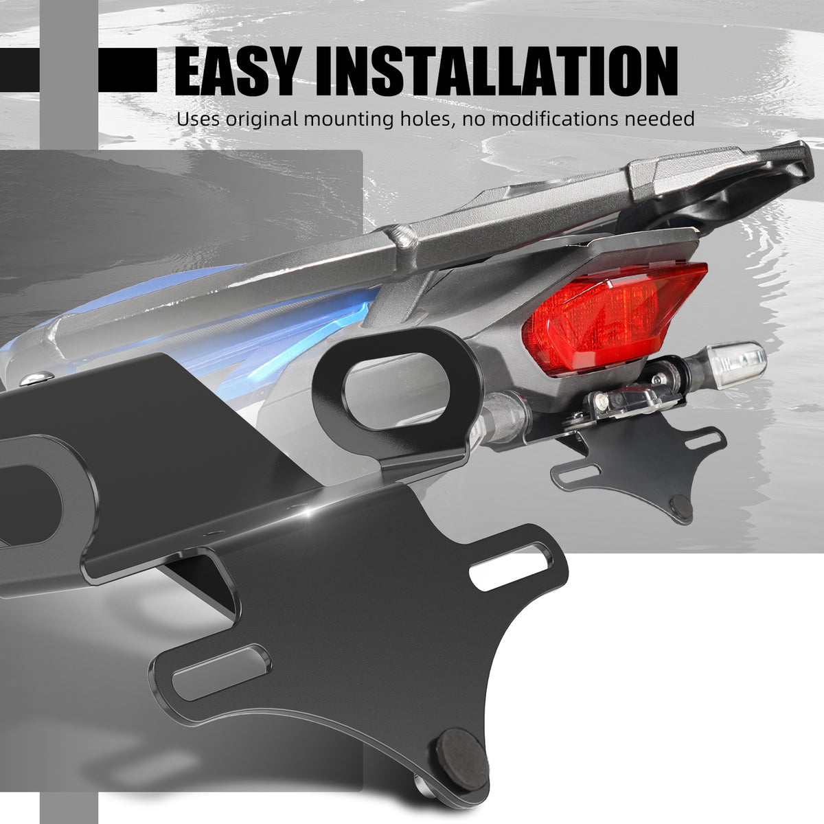 Designed to use the original vehicle’s license plate light and tail light mounting holes, allowing for a simple replacement installation without modifying the original parts or wiring.