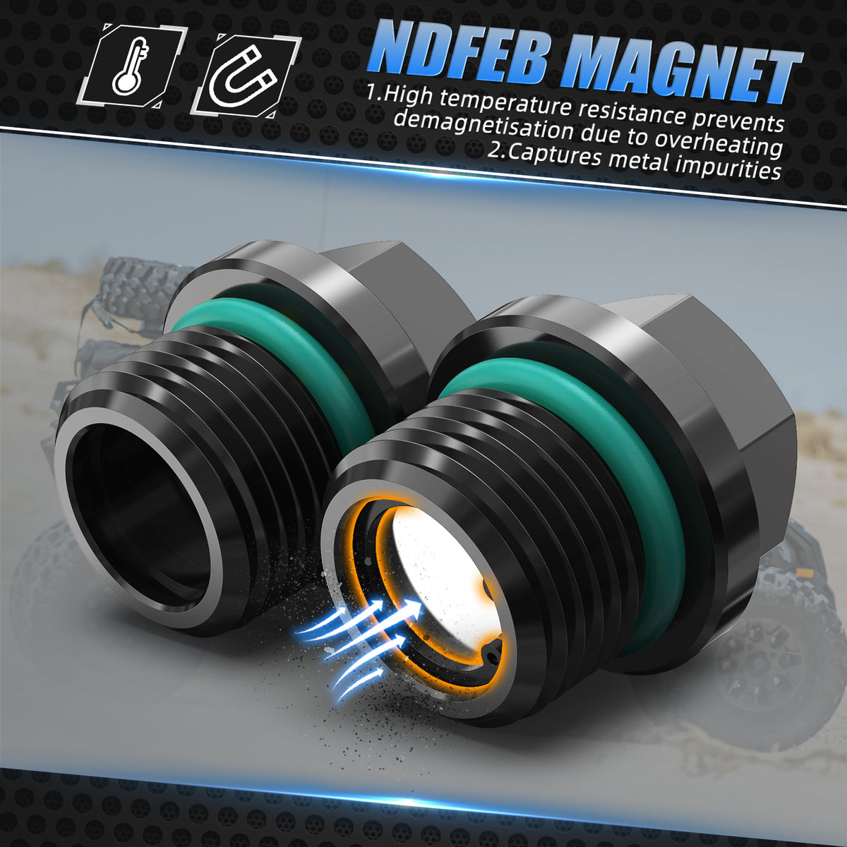 【 Neodymium Magnet】The oil drain screw features a strong Neodymium magnet, enduring temperatures up to 120 degrees Celsius. It captures metal impurities and guards against demagnetization, preserving peak transmission performance.