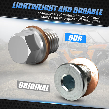 【Lightweight and Durable】Made from high-quality stainless steel material, our drain bolt is lighter and more durable compared to the original factory plug, providing long-lasting protection for your engine.