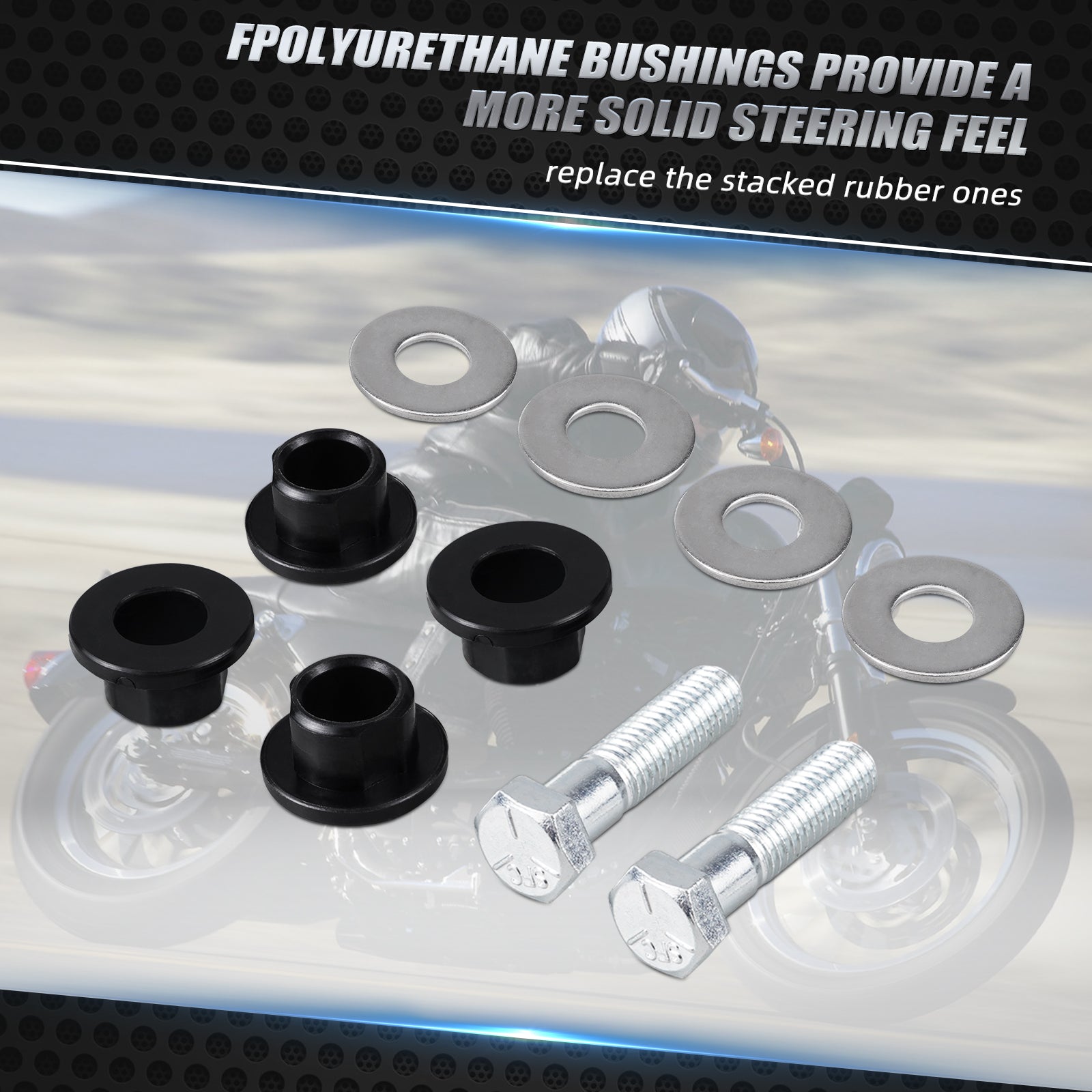Upgrade to polyurethane bushings for enhanced steering stability. Replace worn-out factory rubber bushings. Apply lubricant before installation for easy assembly.