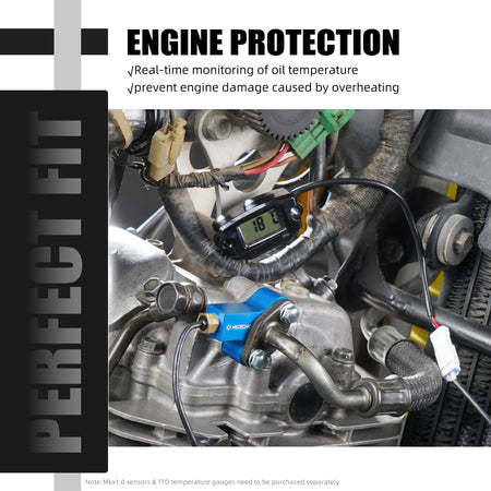 This oil temperature sensor block kit is designed to work with Trail Tech M6x1.0 sensors and TTO temperature gauges, which need to be purchased separately