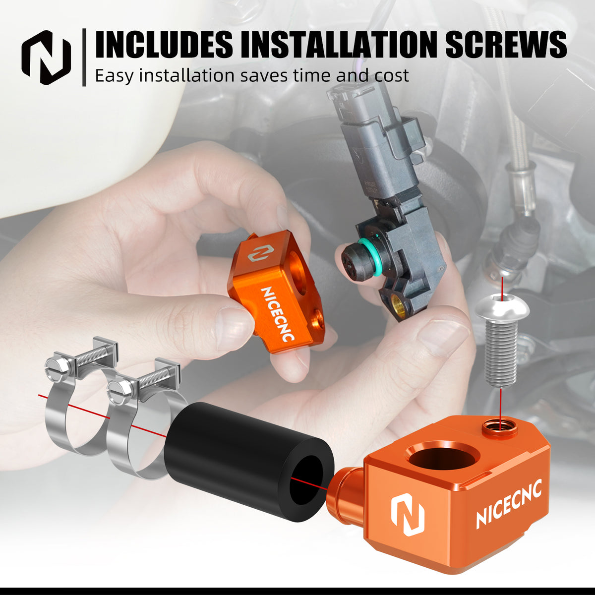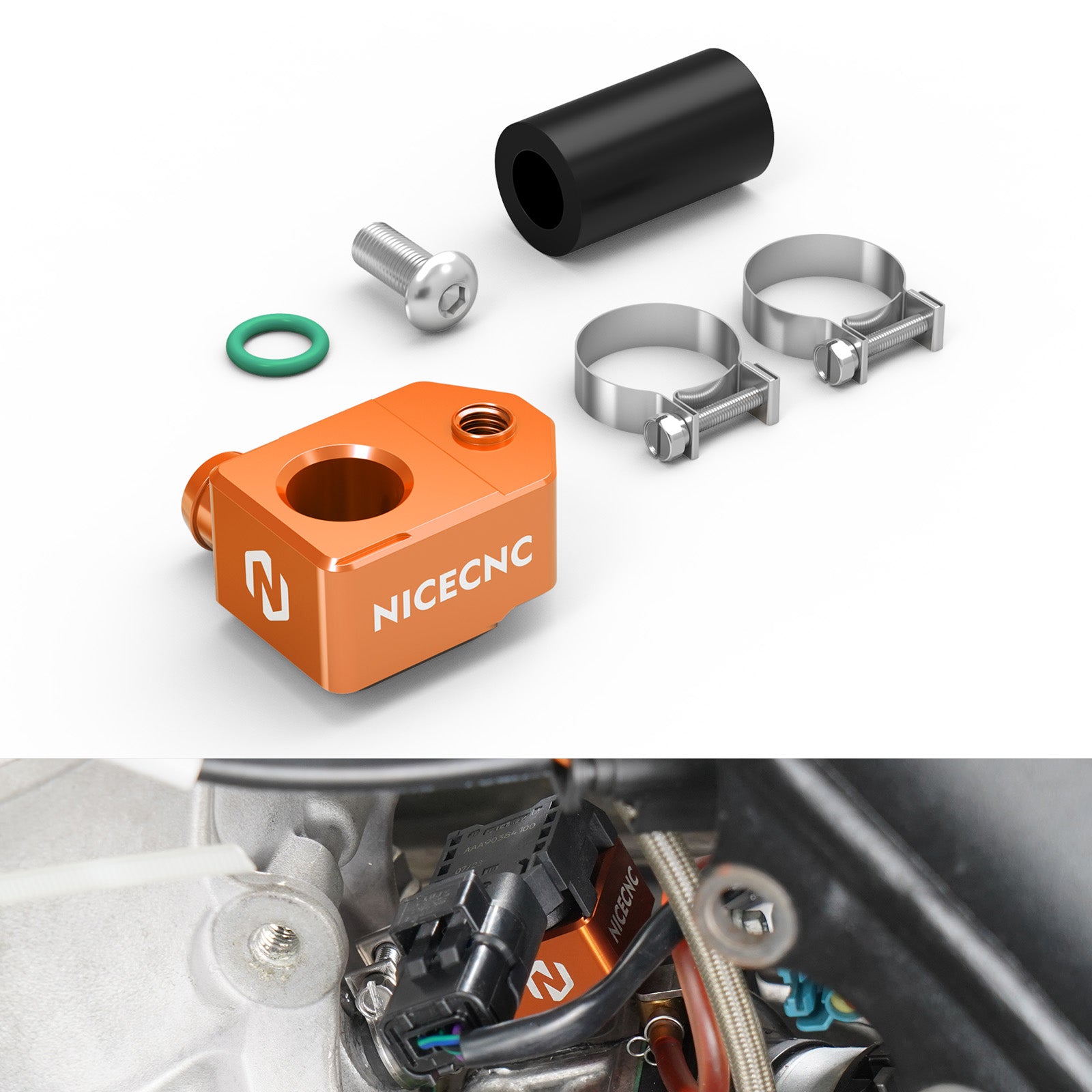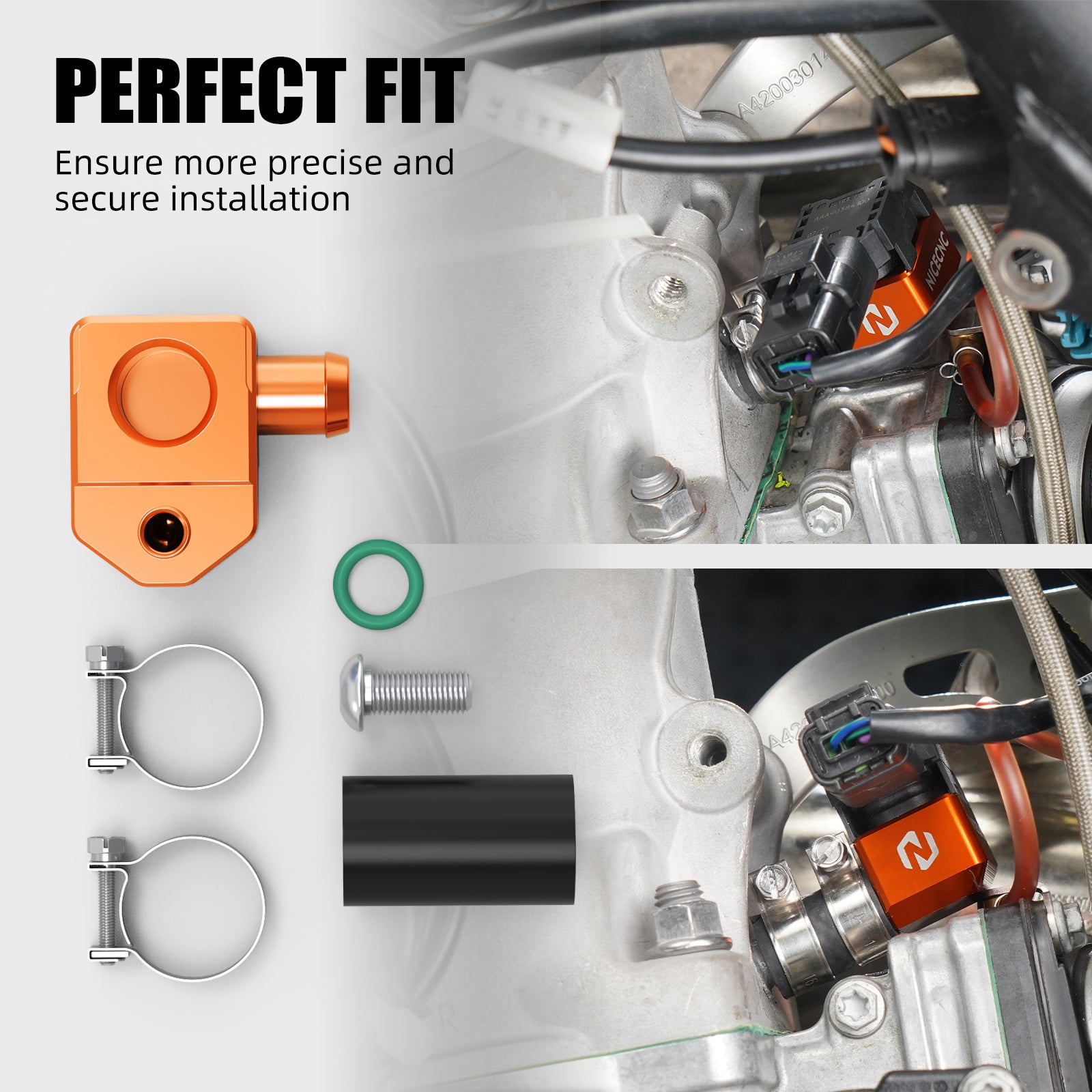 The NICENCNC TBI Crankcase Pressure Sensor Bracket is a high-performance upgrade designed to address the common oil leaks and durability issues of the original rubber bracket. The factory rubber bracket is prone to oil leaks at the joint connecting to the pressure sensor, leading to decreased motorcycle performance, increased fuel consumption, and reduced riding stability.