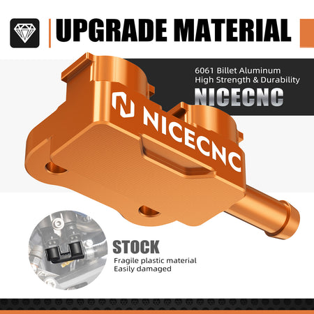 This high-flow fuel fitting for TBI motorcycles is designed to address the common issues with the original plastic fuel fitting. The original part is fragile and prone to damage, and its small fuel supply orifice restricts fuel flow, leading to insufficient fuel delivery under high load conditions and impacting engine performance.