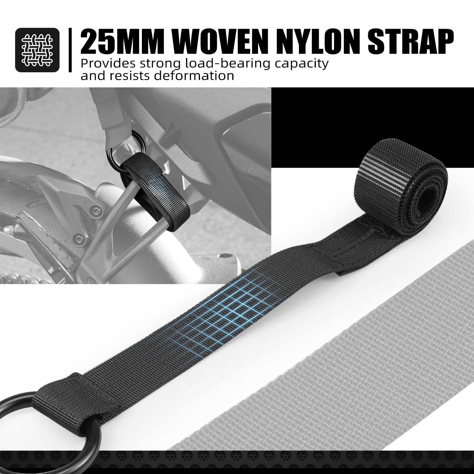 Made from industrial-grade, wear-resistant and tensile-resistant nylon material, it offers strong load-bearing capacity. It remains tight without deformation over time, making it suitable for all kinds of extreme off-road conditions.