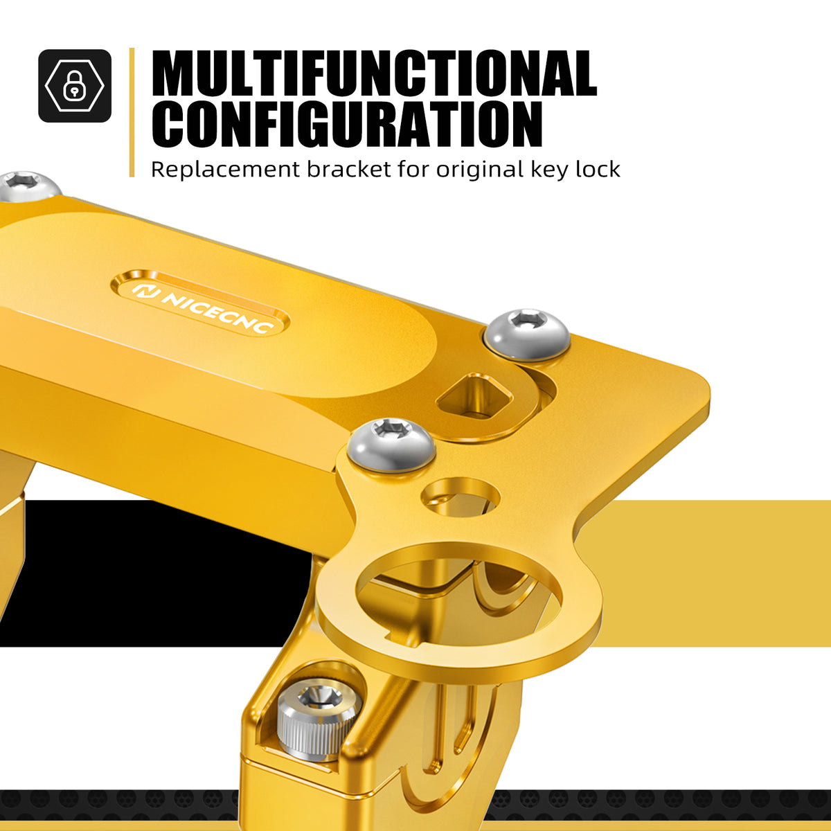 【Multifunctional Configuration】Adaptable to 1-1/8" or 7/8" handlebars (with spacers), Supplied with replacement bracket for original key lock.
