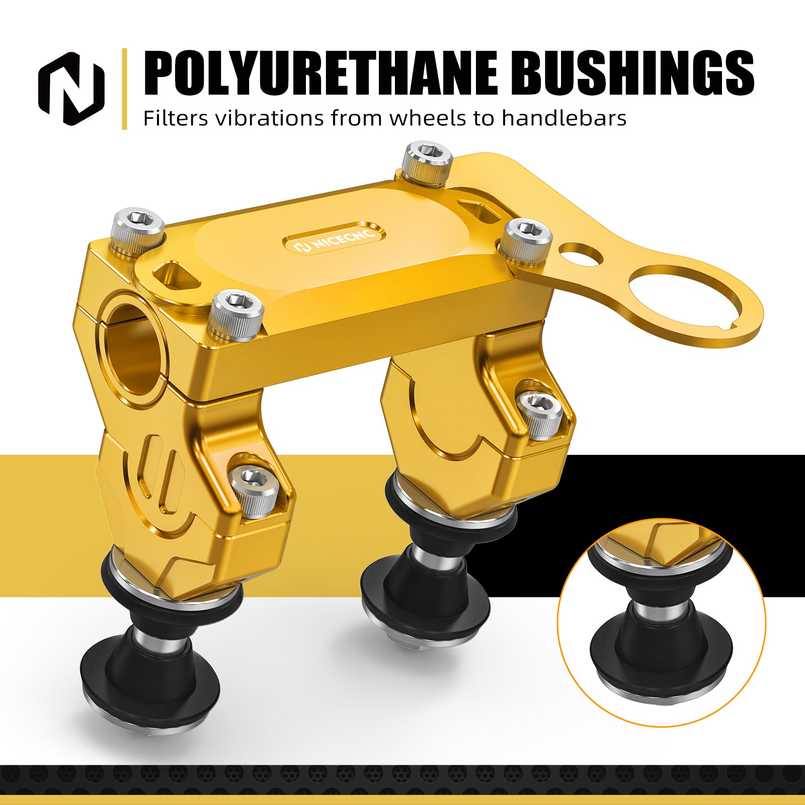 【Polyurethane Bushings】Equipped with high-resilience polyurethane bushings that absorb road vibration for smoother, more controlled rides.
