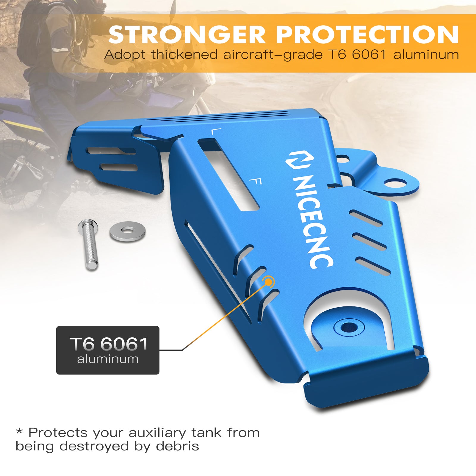 【Stronger Protection】Made from T6 6061 aluminum for high strength, light weight, and superior corrosion resistance. Protects your auxiliary tank from being destroyed by debris.