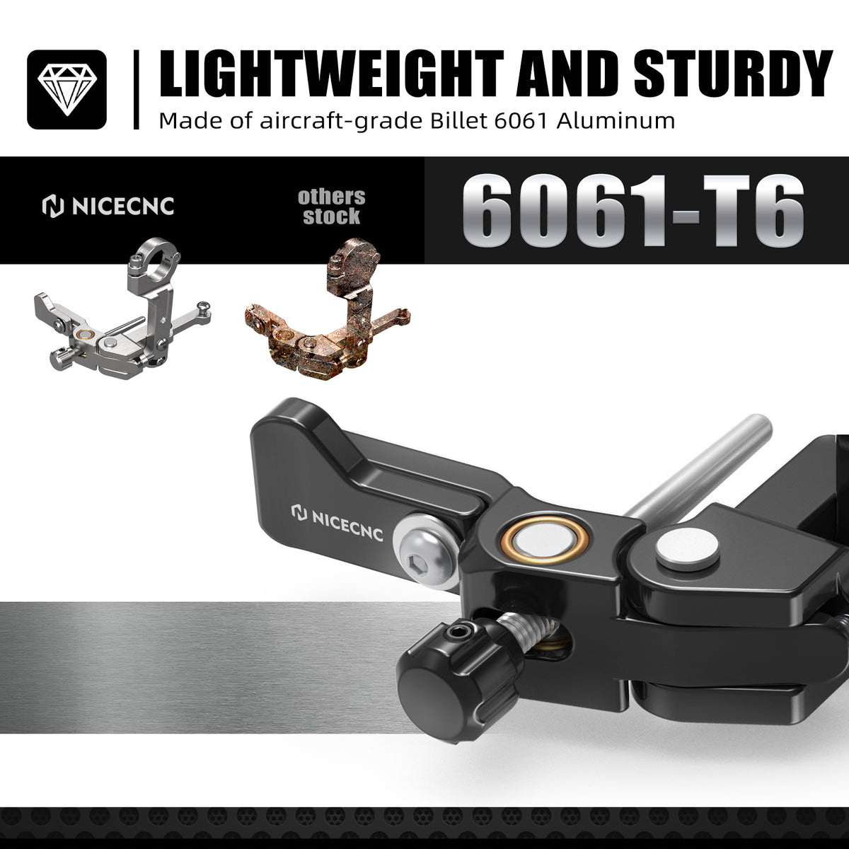 - Crafted from T6061 billet aluminum with a black anodized finish for durability and aesthetics.