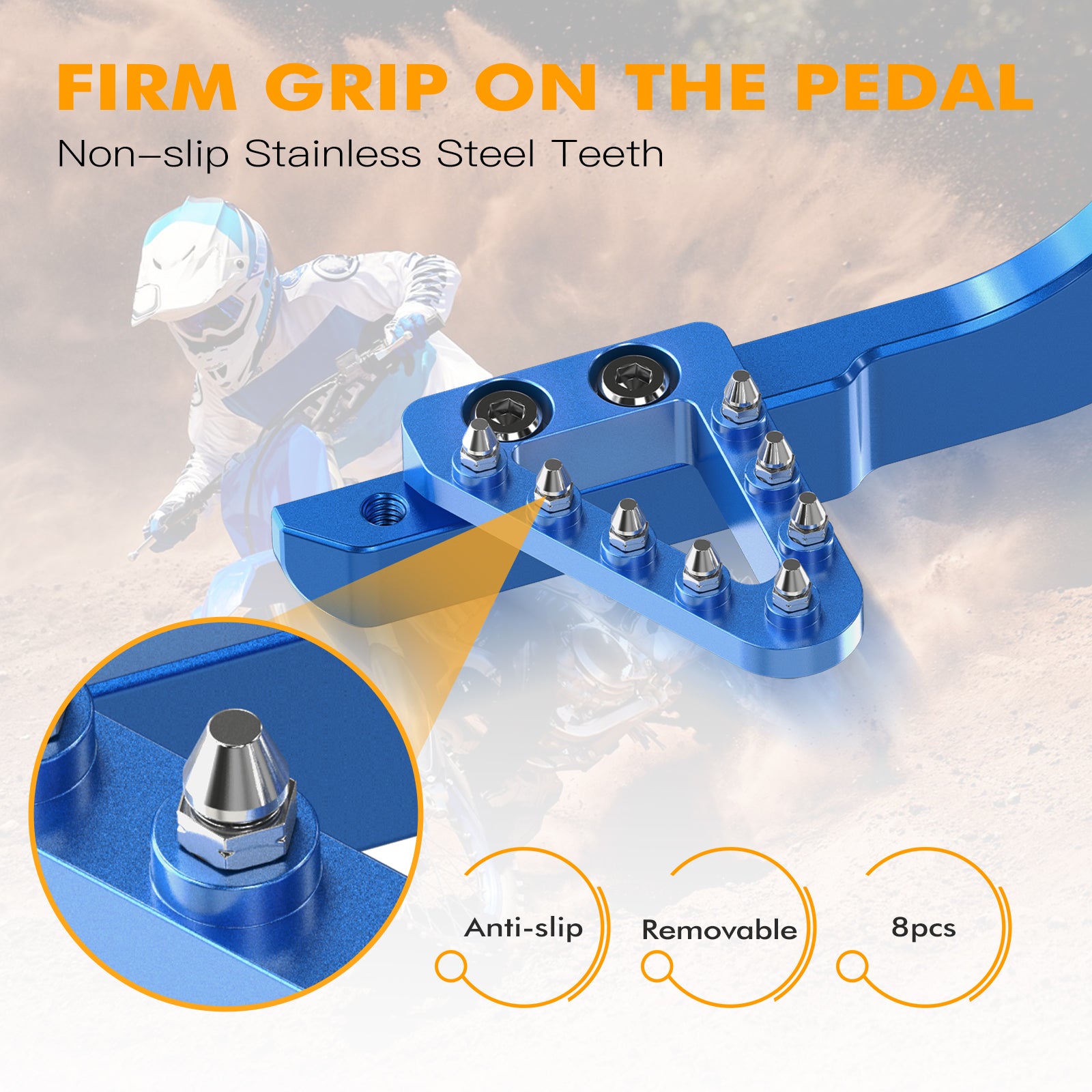 This Premium upgrade Rear Brake Pedal is CNC machined from high quality aluminum with anodized finishing. It features great lightness, high strength, superior durability and great looks than the stock levers.