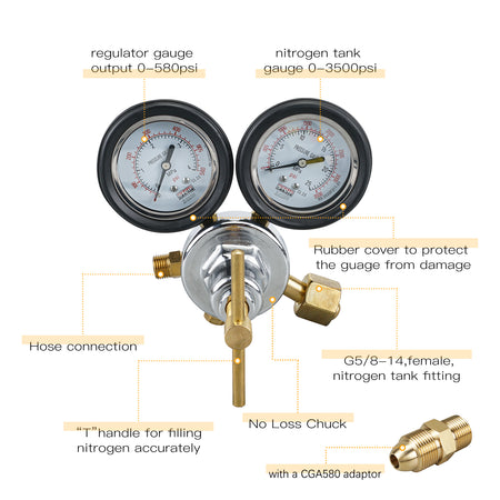 * G5/8-14 Fitting with CGA580 adaptor,suitable for most USA standard nitrogen tanks