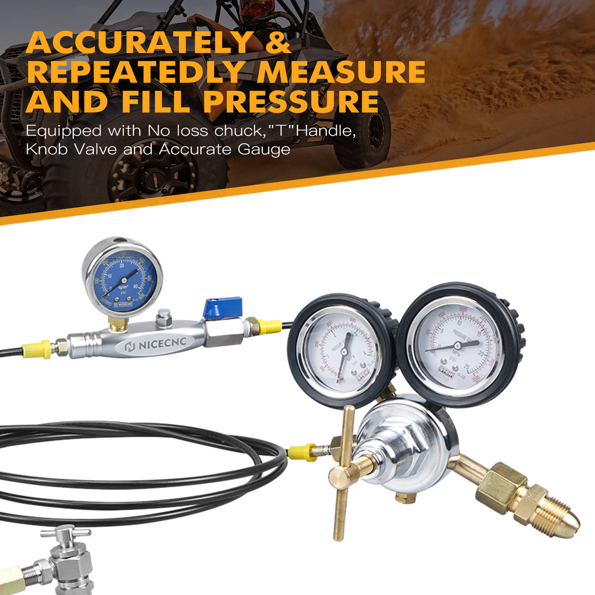 NiceCNC Nitrogen Shock Fill Tool 2" 600psi Gauge For KTM Yamaha Honda Suzuki BMW Aprilia Ducati UTV ATV Motorcycle Off-road Dirt Bike