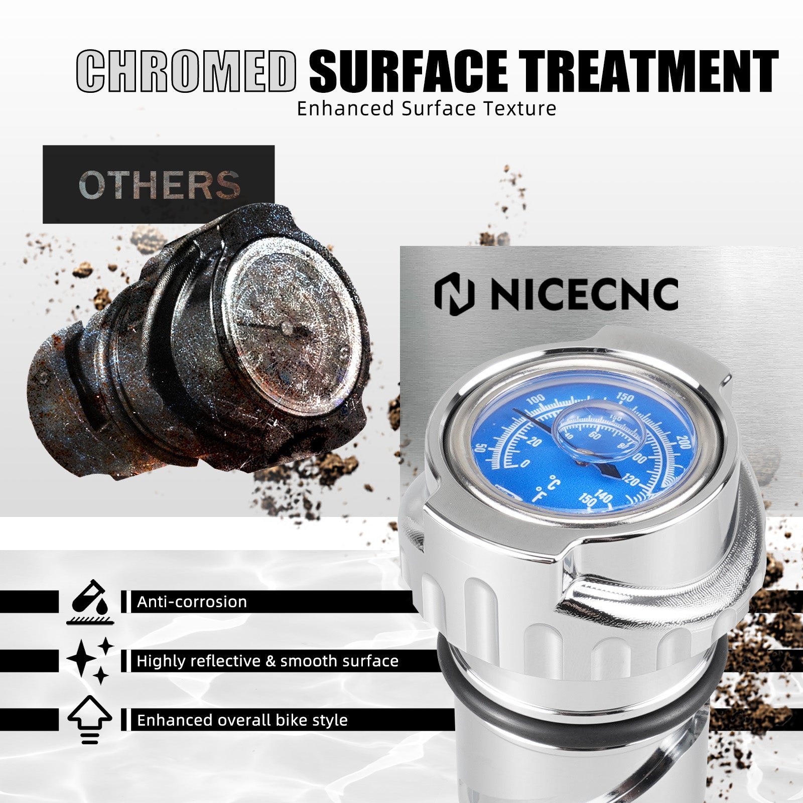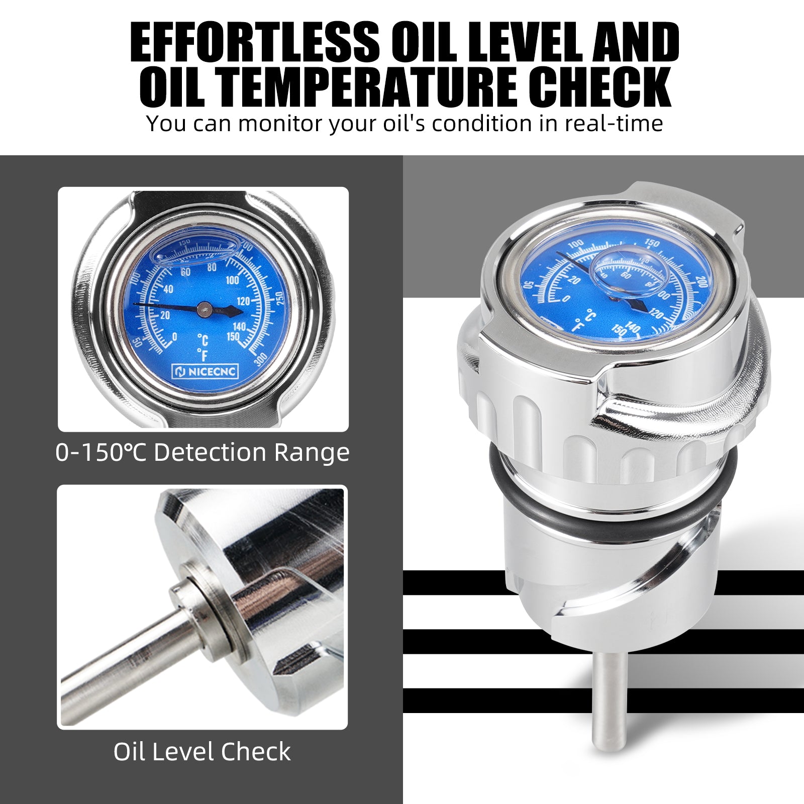 NICECNC oil dipstick with temperature allows you to easily check your oil level and oil temperature while adding a touch of custom style.