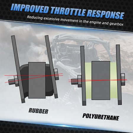 【Enhanced Throttle Response】By reducing excessive movement in the engine and gearbox, our polyurethane bushings improve throttle response compared to factory rubber bushings and reduces engine / drive train misalignment and belt wear.