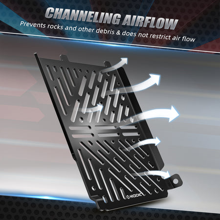 During cycling, objects like stones, insects, and dirt can enter the radiator and cause blockage and damage to the fins, reducing its efficiency. To solve this problem, a radiator guard can be installed as a barrier to prevent these objects from entering, thereby extending the radiator's lifespan.