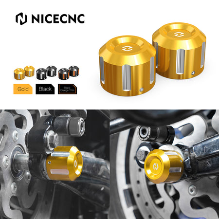 NICECNC brand new Rear Axle Nut Covers was made of aviation-grade solid 6061 aluminum alloy, which is durable and lightweight. The anodized surface treatment enhances the appearance texture, prevents corrosion and rust. The process is CNC-milled and customized for Harley motorcycles to match the overall style. Sold in pairs, available in 3 colors. New style, upgrade your Harley engine appearance, and create your unique motorcycle style.