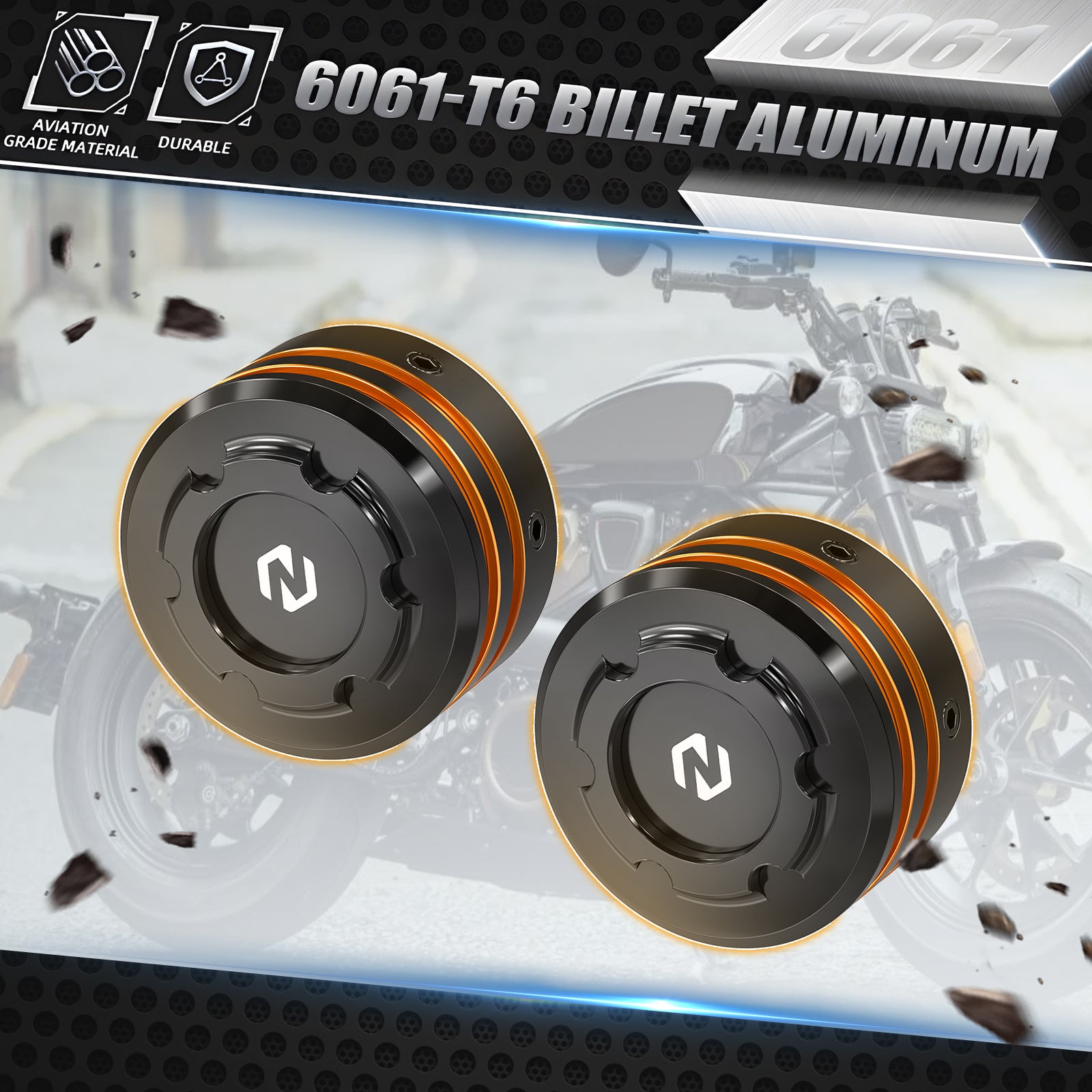 NICECNC brand new Rear Axle Nut Covers was made of aviation-grade solid 6061 aluminum alloy, which is durable and lightweight. The anodized surface treatment enhances the appearance texture, prevents corrosion and rust. The process is CNC-milled and customized for Harley motorcycles to match the overall style. Sold in pairs, available in 2 colors. New style, upgrade your Harley appearance, and create your unique motorcycle style.