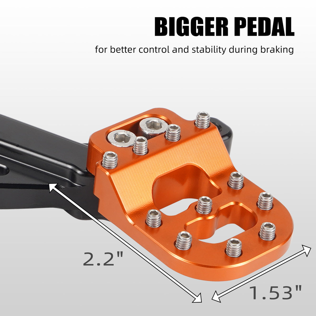 Larger pedal surface area compared to OEM for better control and stability during braking.