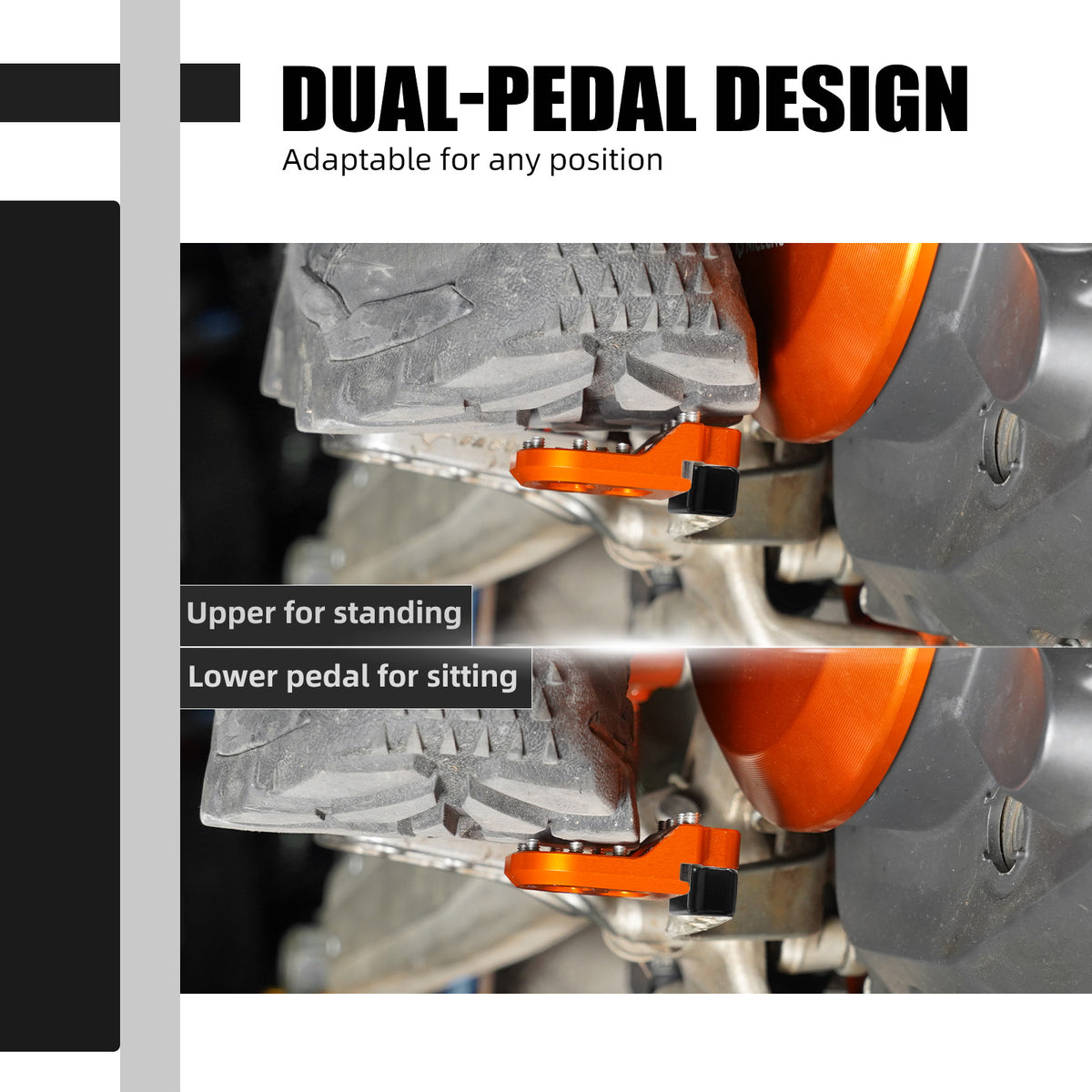 In addition to its strength, this lever also prioritizes comfort and safety. The stepped pedal design adapts to different riding positions— the lower pedal is ideal for seated riding, while the upper pedal retains the original height, perfect for standing. With a larger surface area than the stock pedal, it provides superior control and safety. The flat serrated design improves grip, and the CNC-machined aluminum ensures high durability and easy installation.
