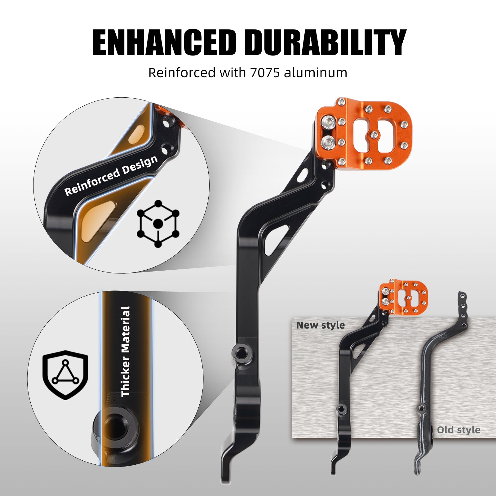Reinforced 7075 aluminum lever addresses OEM bending issues with a thicker, more reliable design.