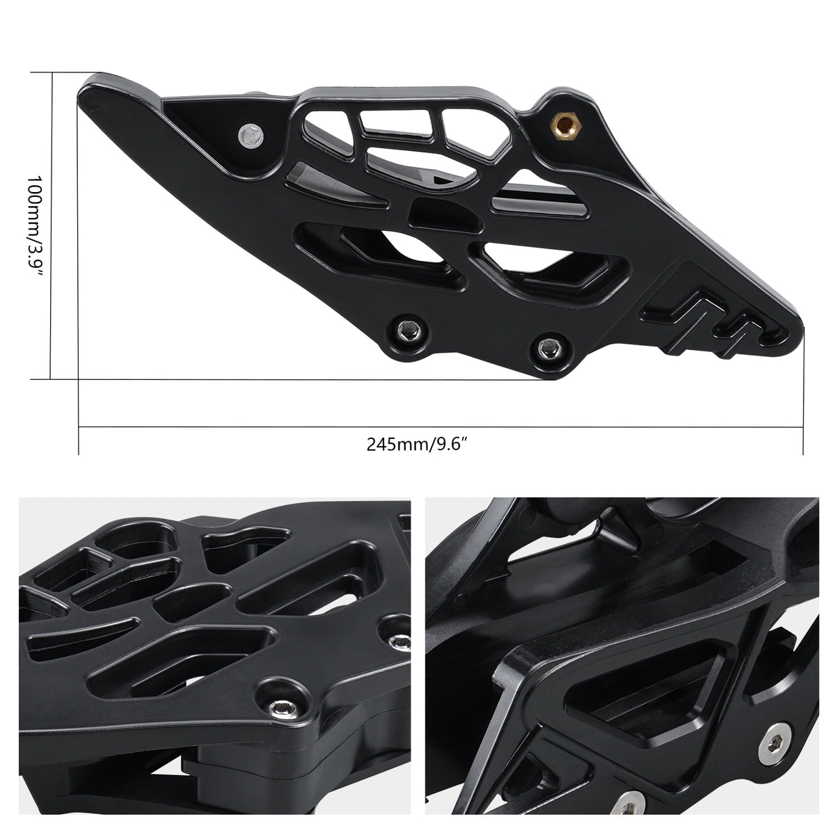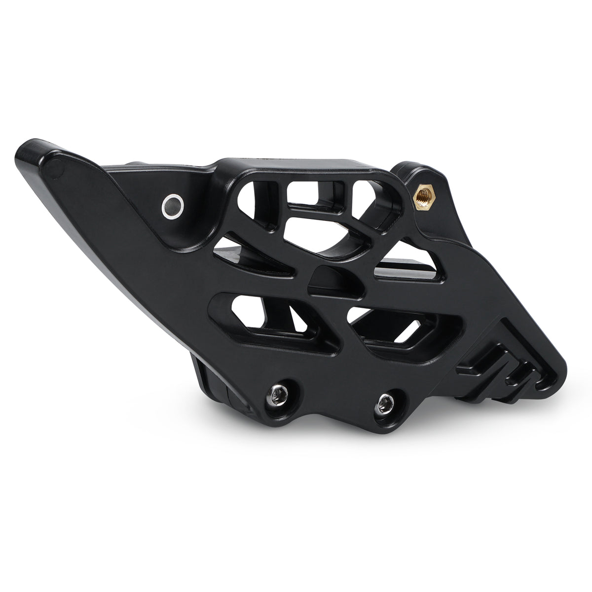 Protect your motorcycle chain even the rear sprocket on heavy impacts with this durable plastic rear chain guide. Featuring hard wearing plastic inserts, Stronger than OEM chain guides.