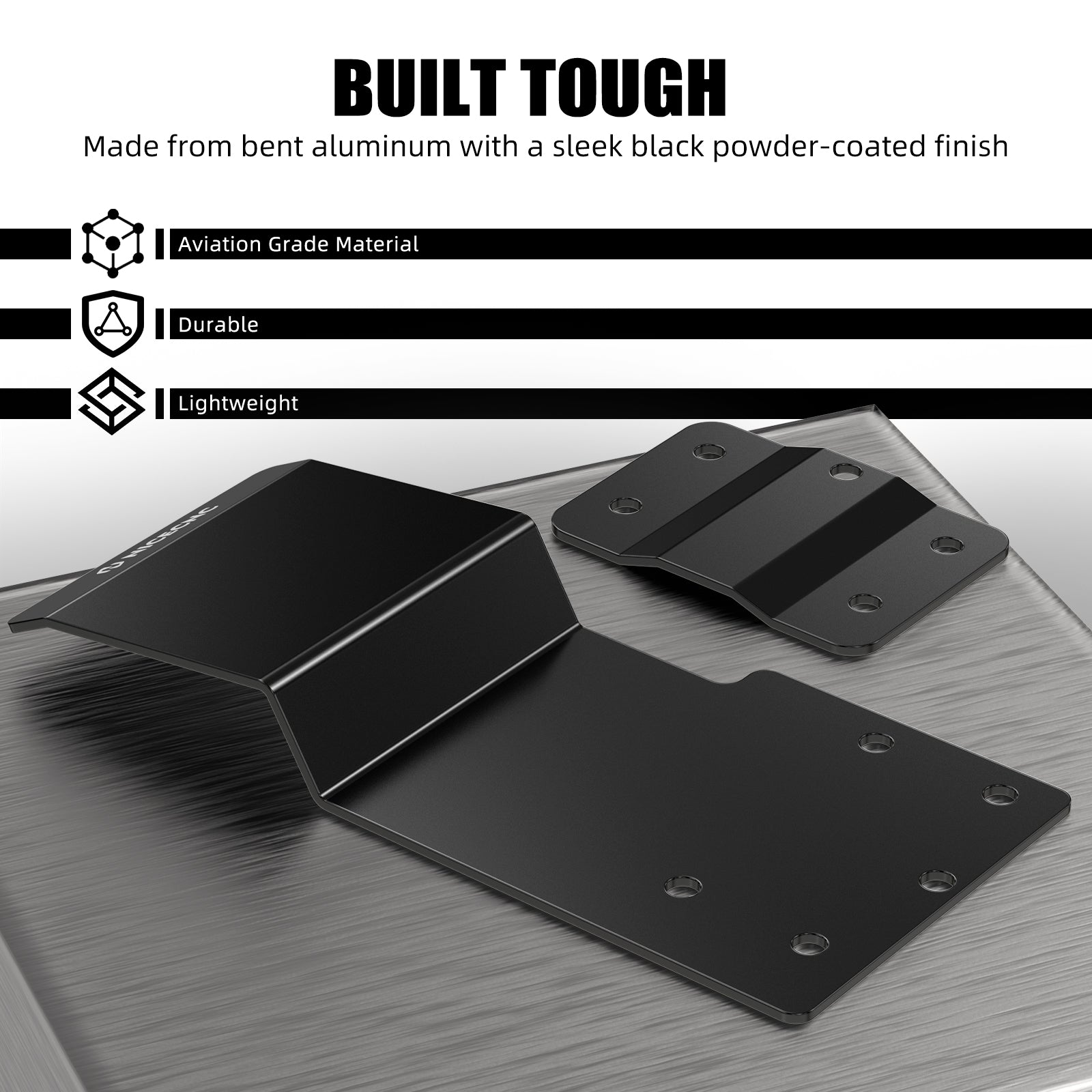 Crafted from bent aluminum sheet metal with a black powder-coated surface, combining strength and aesthetics.