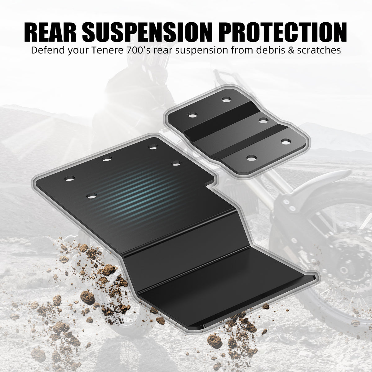 Safeguard your Tenere 700’s rear suspension from debris and scratches, ensuring long-lasting performance.
