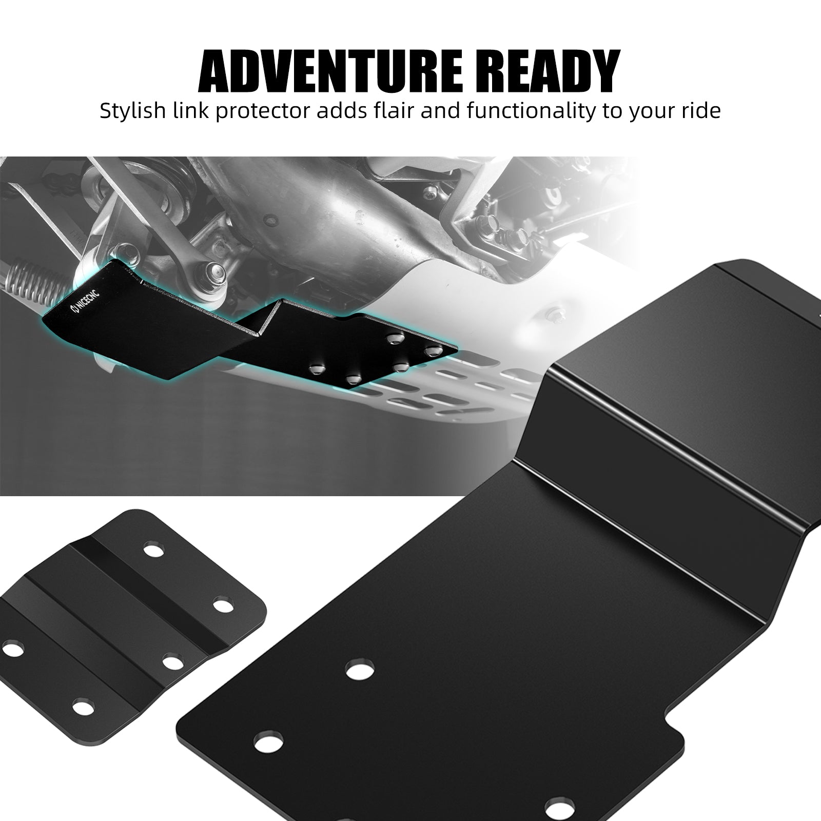 Equipped with a link protector, it not only enhances your bike’s appearance but also adds practical benefits for adventure riding.