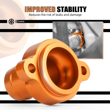 Upgrade your Enduro/Supermoto with a high-performance thermostat cover designed to eliminate the weaknesses of the OEM plastic version. Crafted from premium aluminum, this new housing offers significantly improved durability and stability, resisting deformation caused by prolonged exposure to high temperatures. Engineered to withstand demanding conditions, our housing ensures optimal performance and reliability in all riding scenarios. Say goodbye to the plastic deformation issues of the stock part and experience a lasting solution with NICECNC upgraded aluminum replacement.